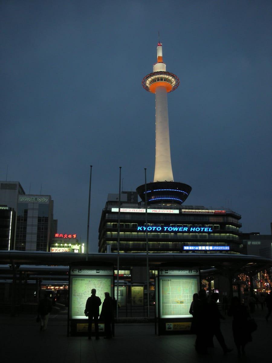 回到京都时已经是晚上了,出站以后,看到了京都塔