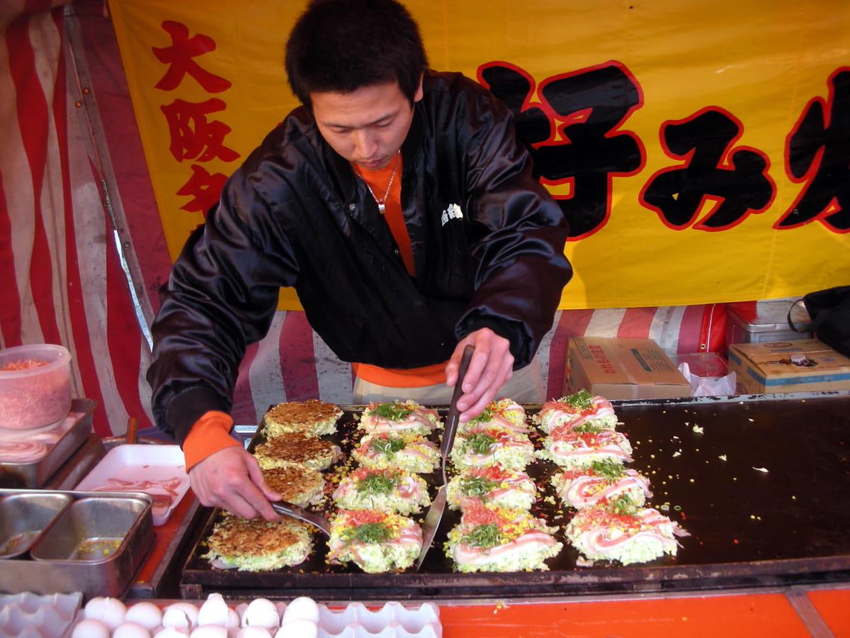 已经看到很多卖章鱼烧和大阪烧的小摊了
