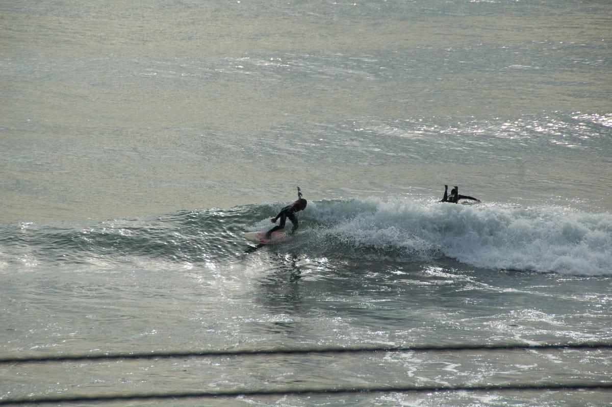 即使是到了深秋的季节,还是会有很多人冲浪。