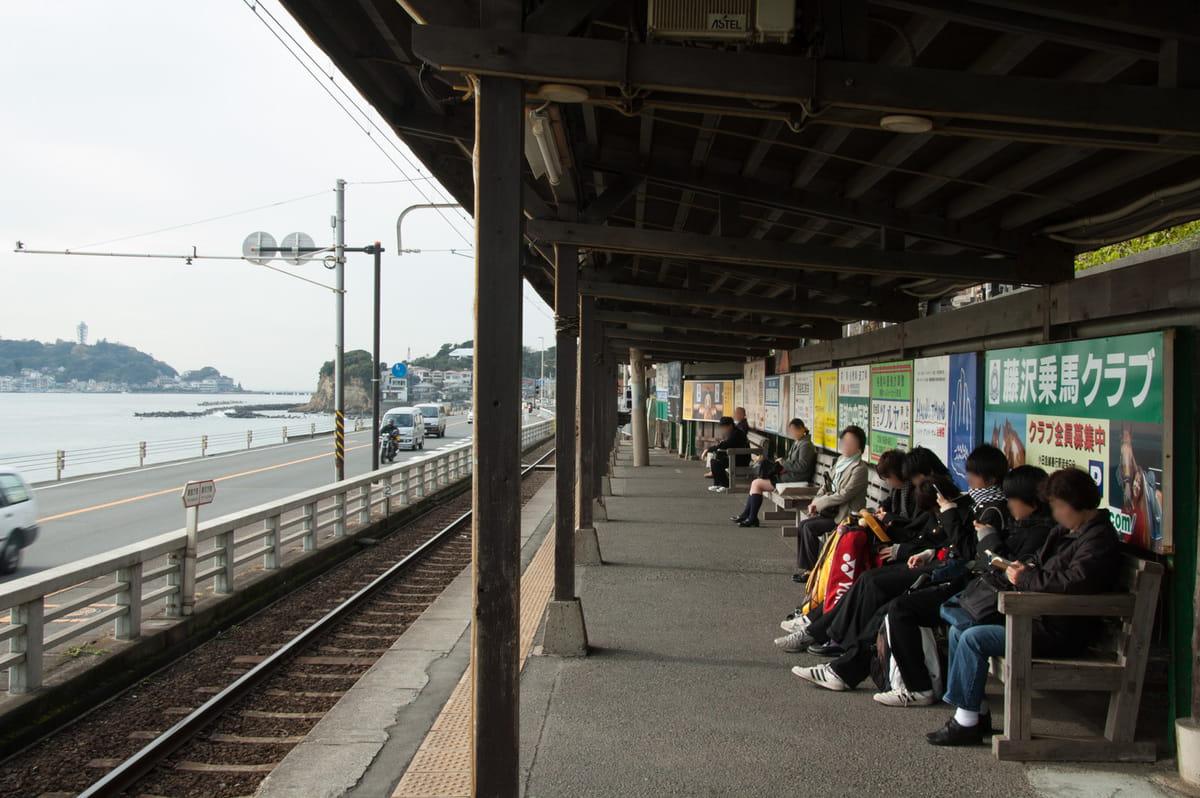等车的人里高中生模样的,应该是镰仓高校的同学吧。