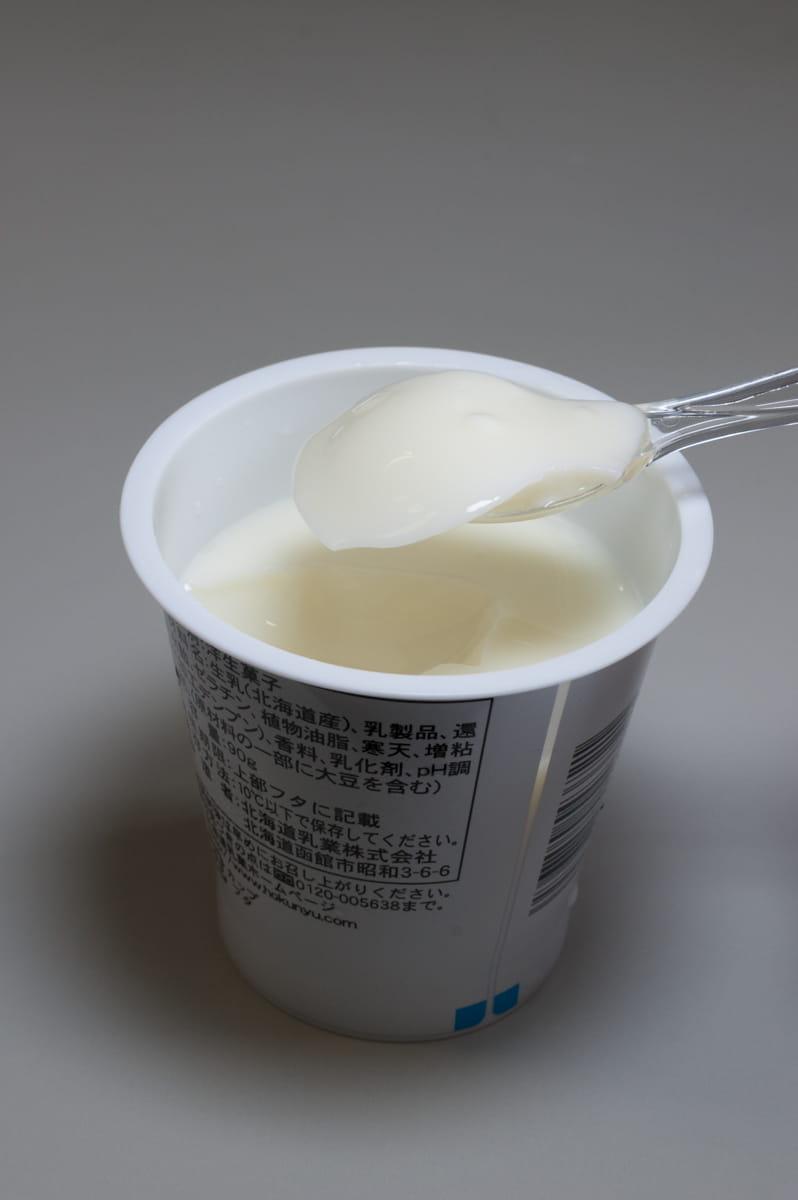 揭开盖子,一股浓郁的奶香扑鼻而来,北海道的牛奶果然名不虚传啊。舀起一勺,雪白晶莹。