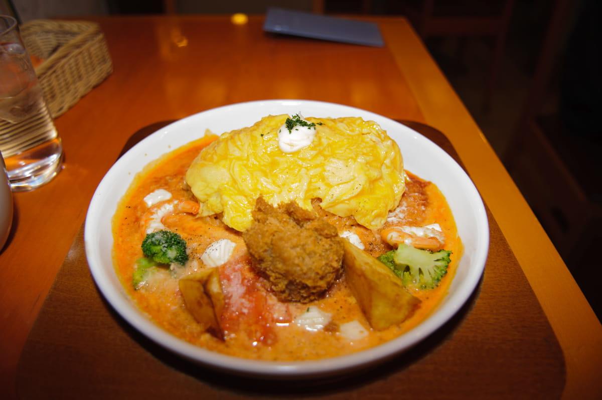 蛋包饭上来的时候,我问了一句能不能拍照,结果服务生女孩误以为我要拍她,脸一红答应了……我连忙指着蛋包饭解释,是这个,这个……但是立刻又后悔了……