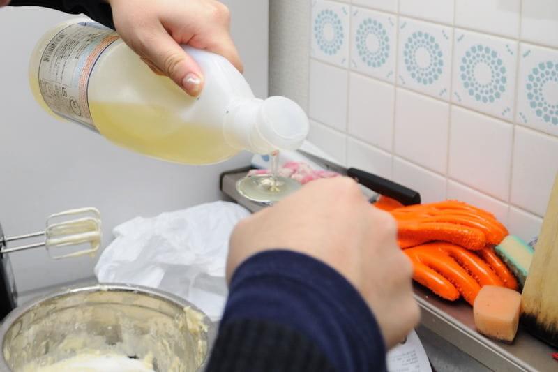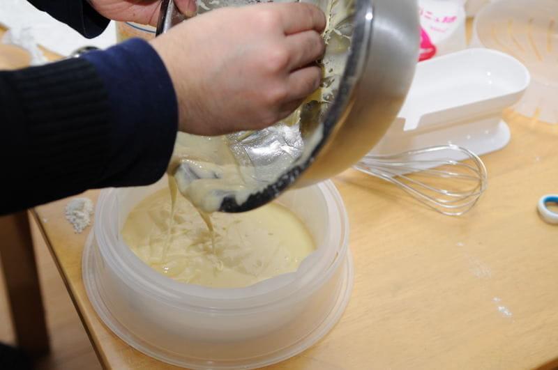 接下来做奶油,把糖和鲜奶油倒入盆里