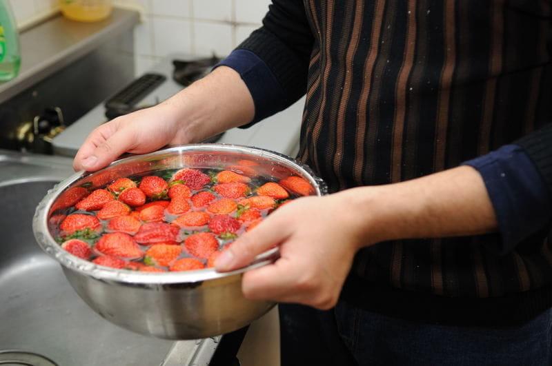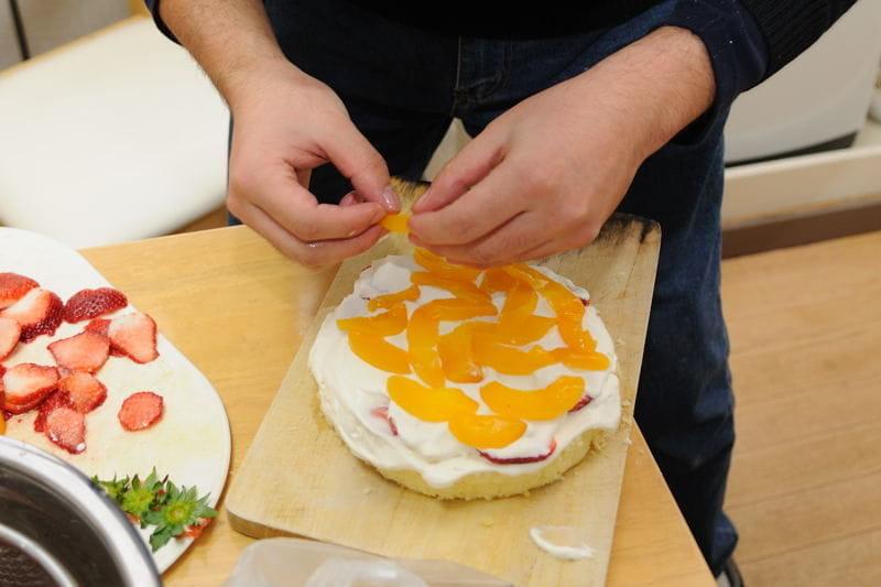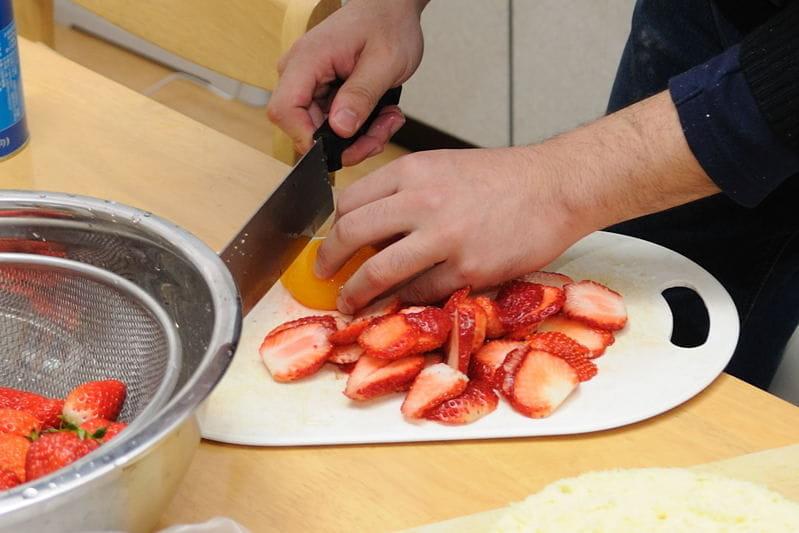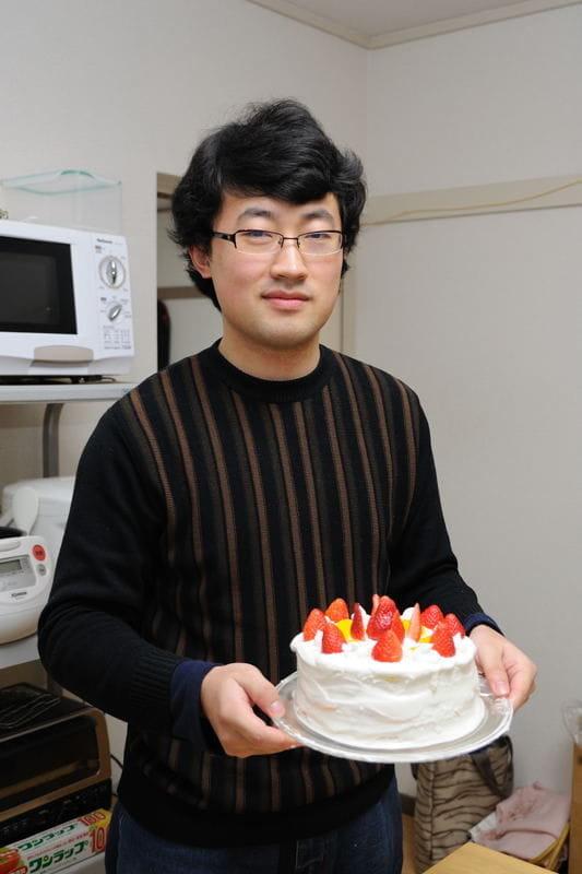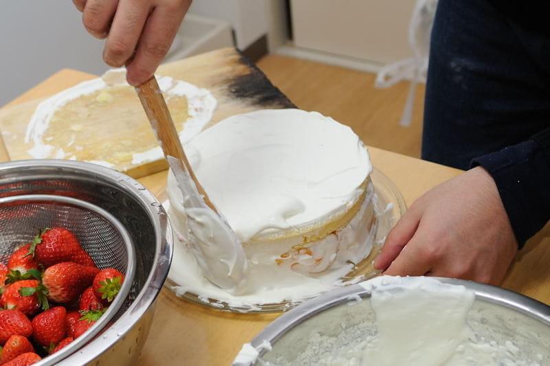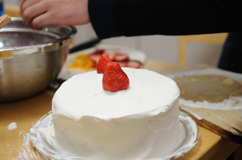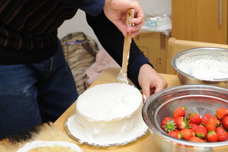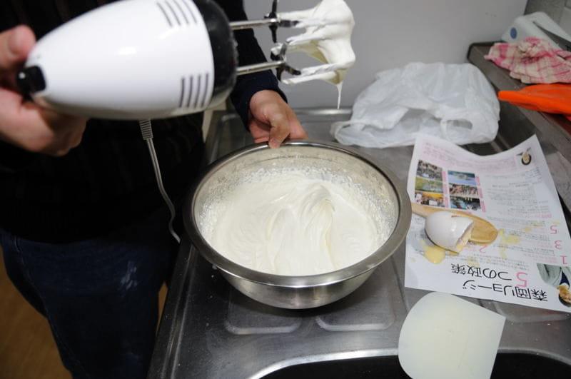 今天在Shigyo老师的指导下,亲手做了一个草莓蛋糕。值得一提的是,蛋糕是微波炉做的。全程记录的照片都是Shigyo san拍的。先把鸡蛋和糖放到盆里