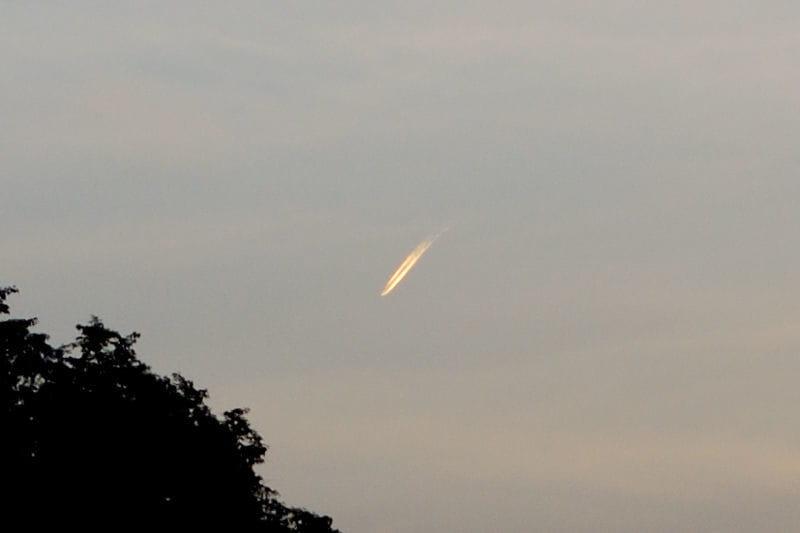 Unidentified Flying Object May 6, 2010 平静的傍晚,夕阳已经落山。 突然间,我发现了一个不明飞行物…… 时间:May 6 18:31:13 UTC+9 2010 NIKON D90 55mm F5.6 1/200s ISO200 放大后看,有两条光迹。 NIKON D90 55mm F5.6 1/200s ISO200 飞行的速度很慢,大约5分钟后,该物体移动至下方的树丛后面,至此从我的视野中消失。 生活 天空, 研究室