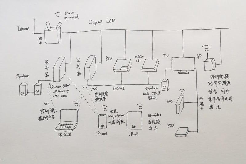 当时基本实现了现在家里网络的雏形,服务器下载,电脑连电视播放视频,用ssh和vnc进行控制。