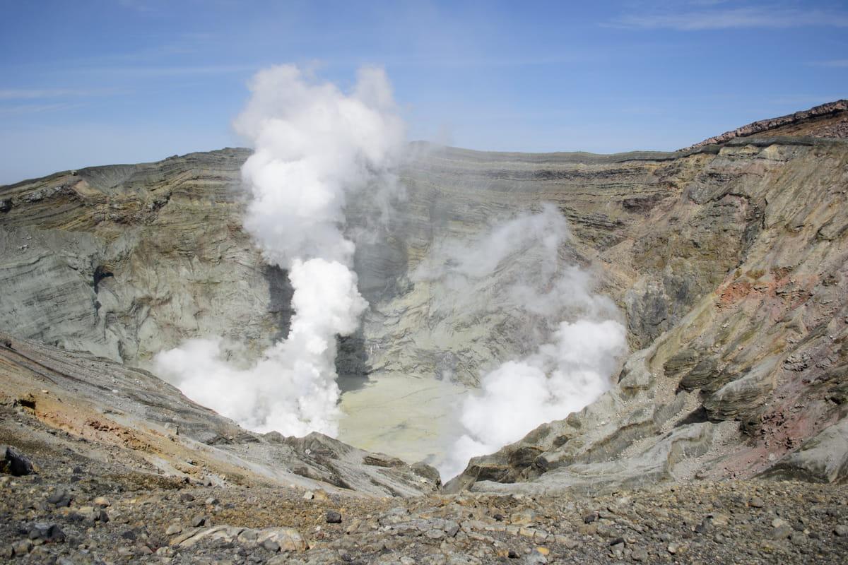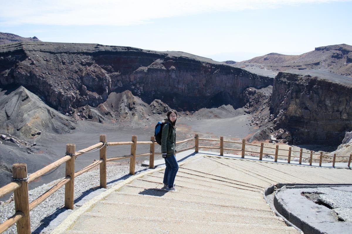 阿苏山是一座活火山,火口在不停的冒烟⋯⋯
