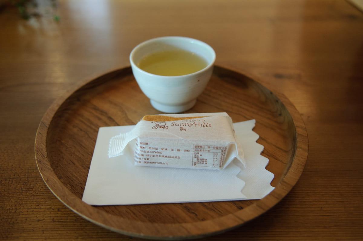 之后就去了松山机场,慕名去了一家叫微热山丘的店买凤梨酥,进去后给了一块凤梨酥和一杯冰的绿茶,味道确实很不错。