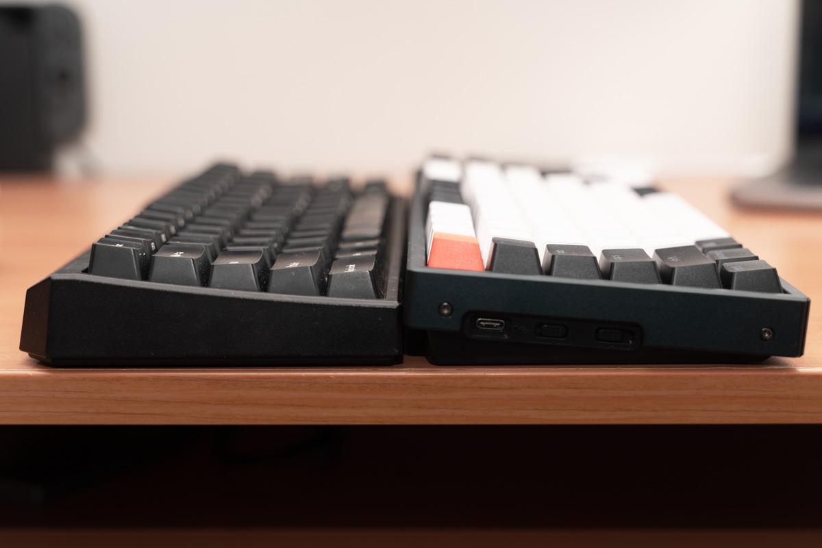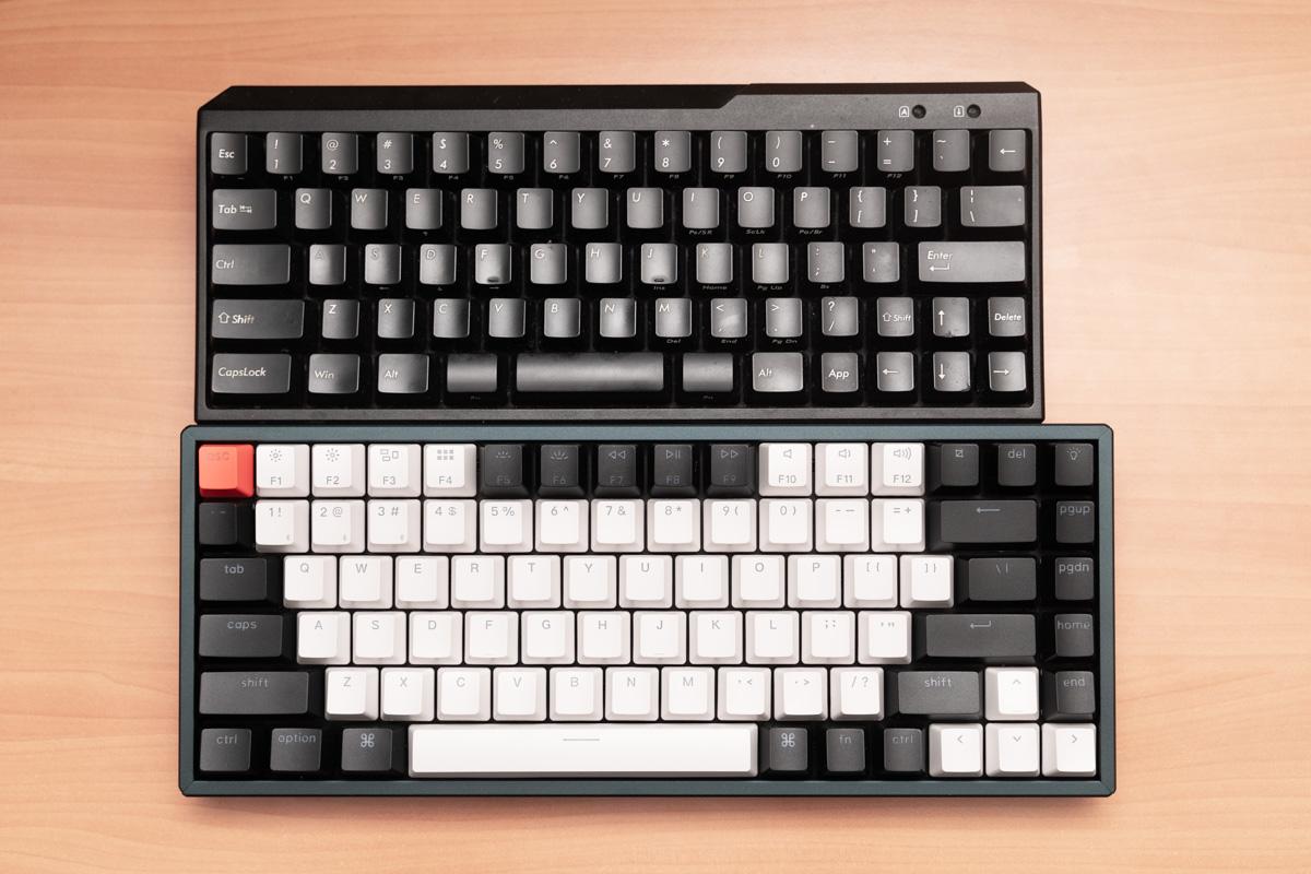 和 Filco Minila 的尺寸对比(俯拍时左侧已对齐,因为 K2 高出一些的拍摄角度问题)