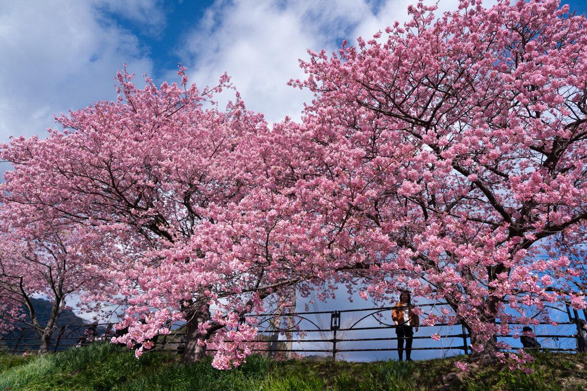 去了伊豆2天1夜的旅行。第一天去看了河津樱,河津樱开得很好。