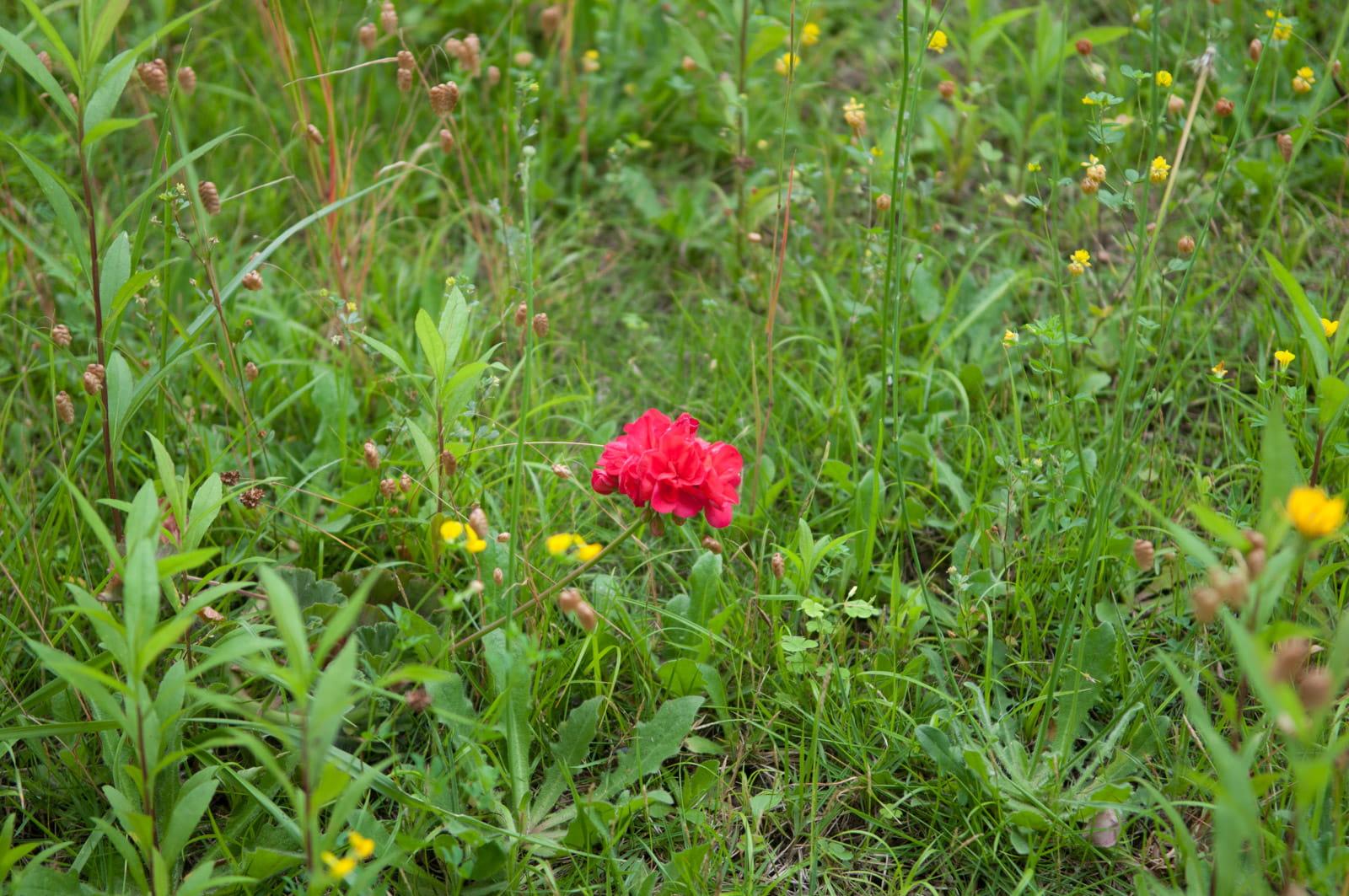 NIKON D90 (17-55mm f/2.8) 55mm F2.8 1/320s ISO200前两天偶然发现,绿色的草丛里,竟然开出一朵鲜艳的红花。