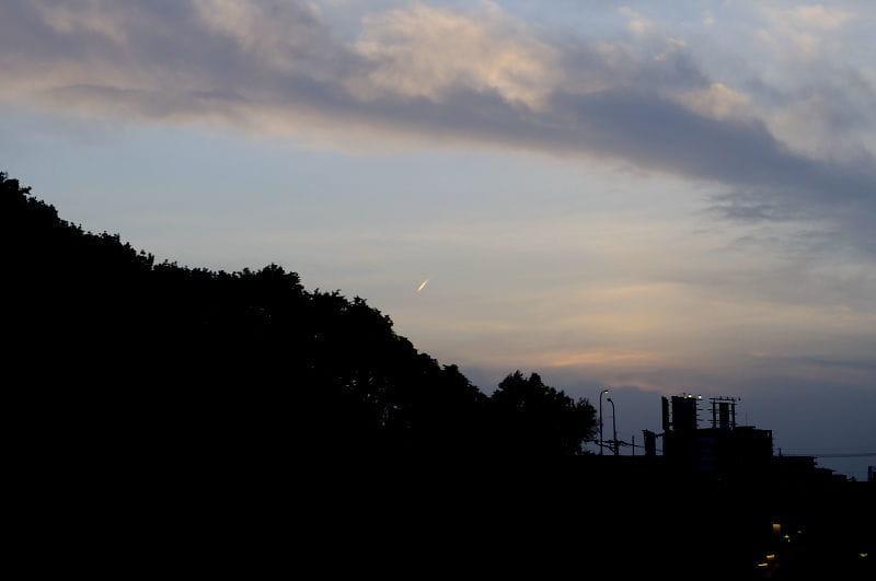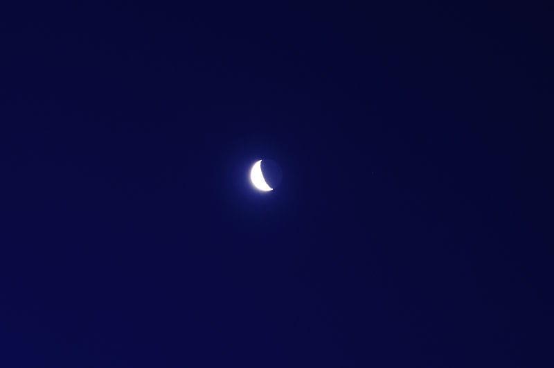 NIKON D90 145mm F8 1.6s ISO200凌晨4点的月亮,天微微泛蓝,非常好看,月亮旁边还有两颗微弱的星星。